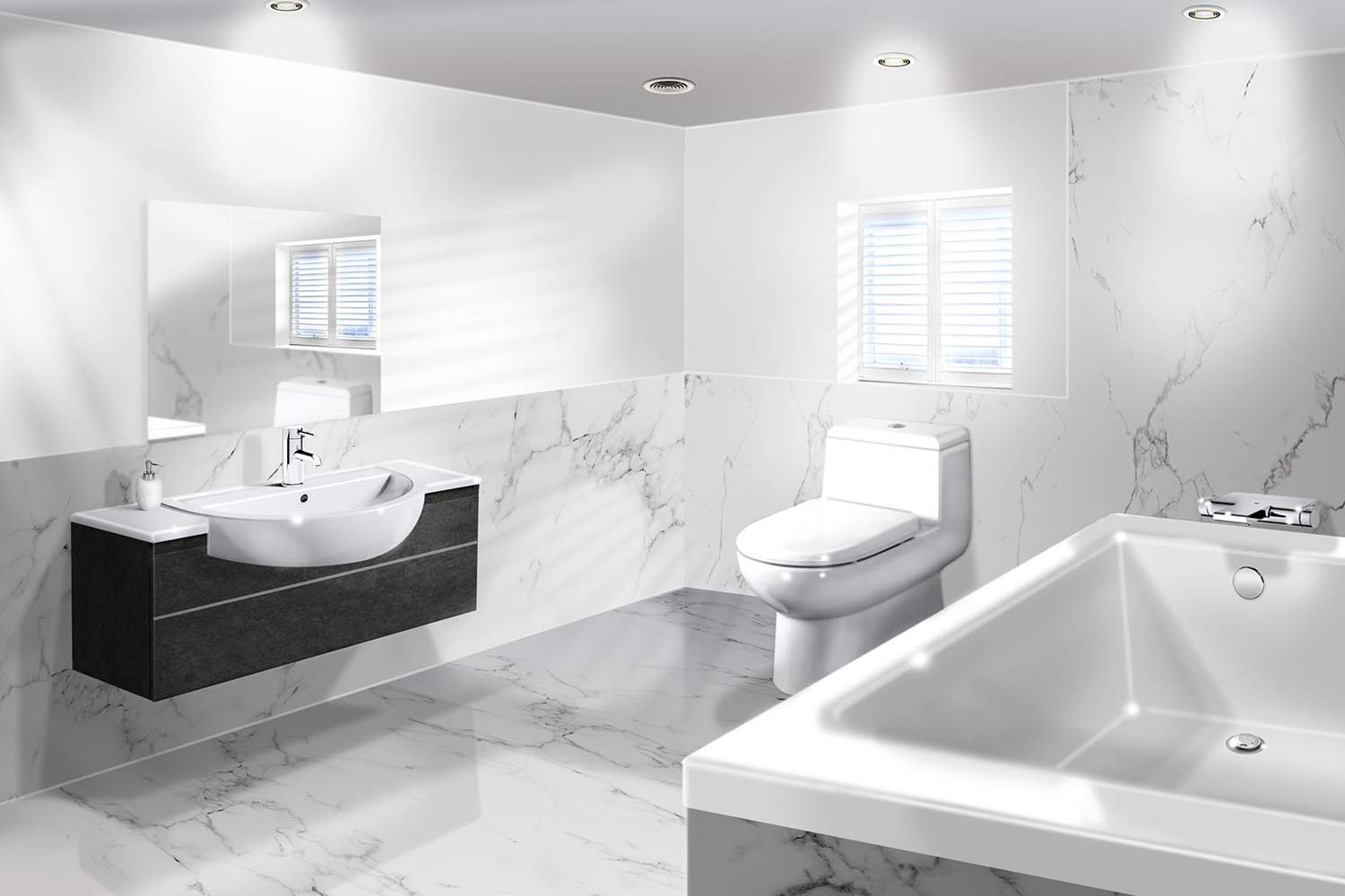 Stylish idealised room settings of new build properties help to market the buildings as 'homes' you could move in to.