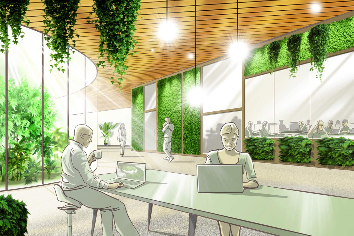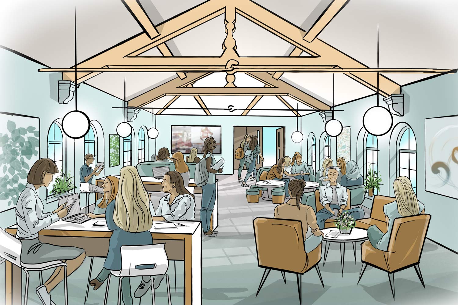 New communial interior spaces benefit from figures to be part of the image. It gives life to the drawing and makes the interior seem more alive.